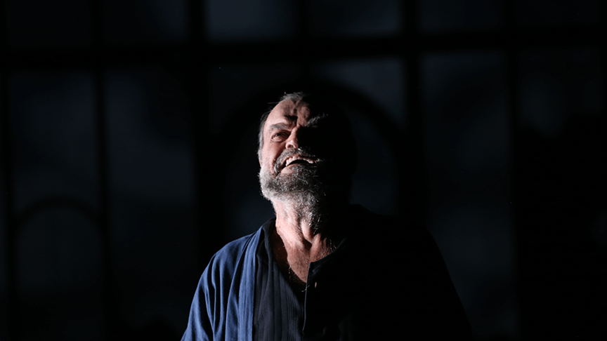 La scénographie est somptueuse, en référence lointaine à l’esthétique ottomane du palais de Topkapi – verrières et grilles de baies vitrées aux jeux de transparence – ombres et lumières. Sur des musiques qu’on croirait traditionnelles aux accents balkaniques, s’élèvent les paroles des chants de l’Andromaque d’Euripide, chantées en grec ancien et mises en musique par Camille Rocailleux.